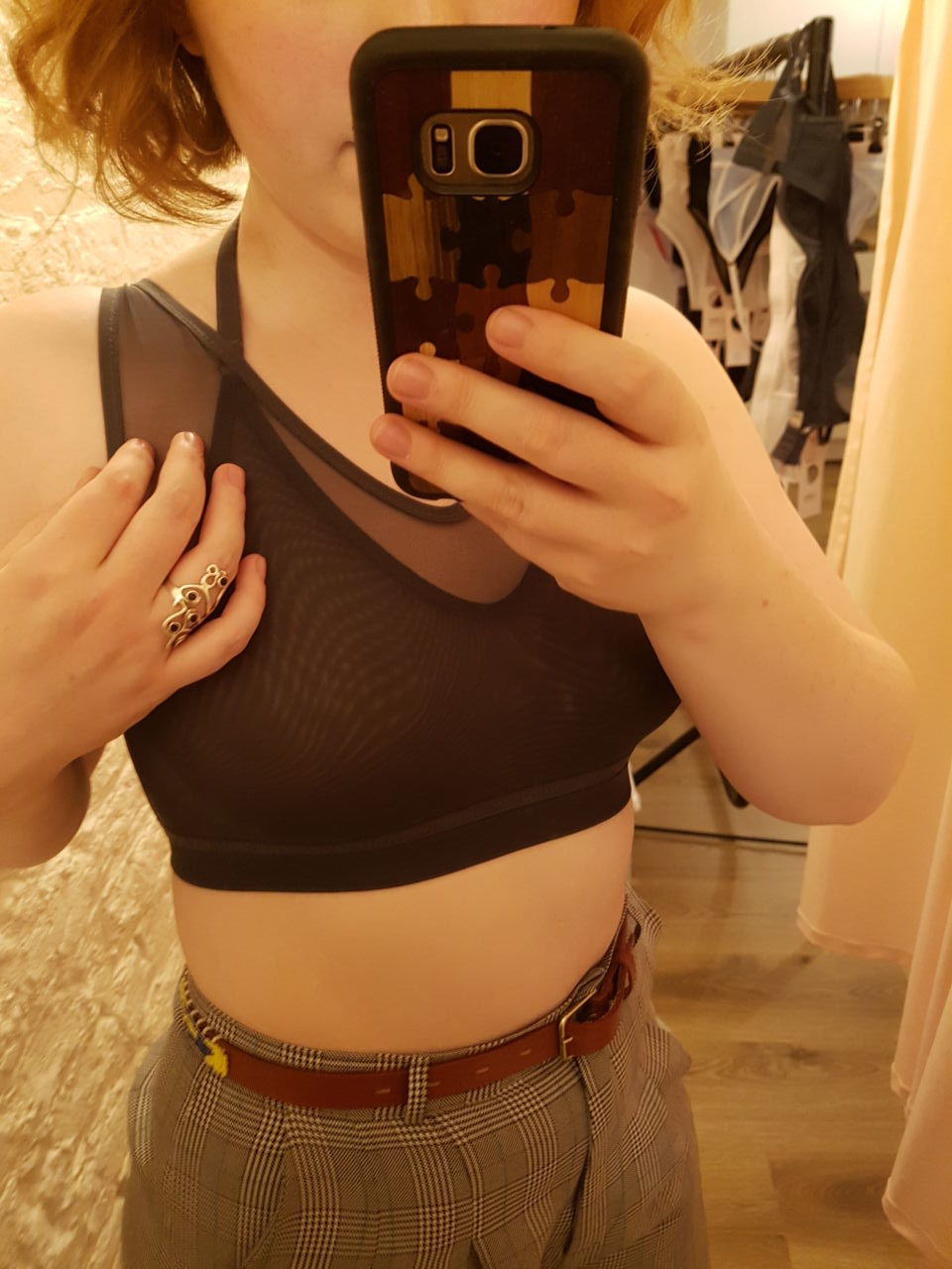 The crop top I tried on in their Soho Studio: pictured here in a 28 band, which actually fit better!
