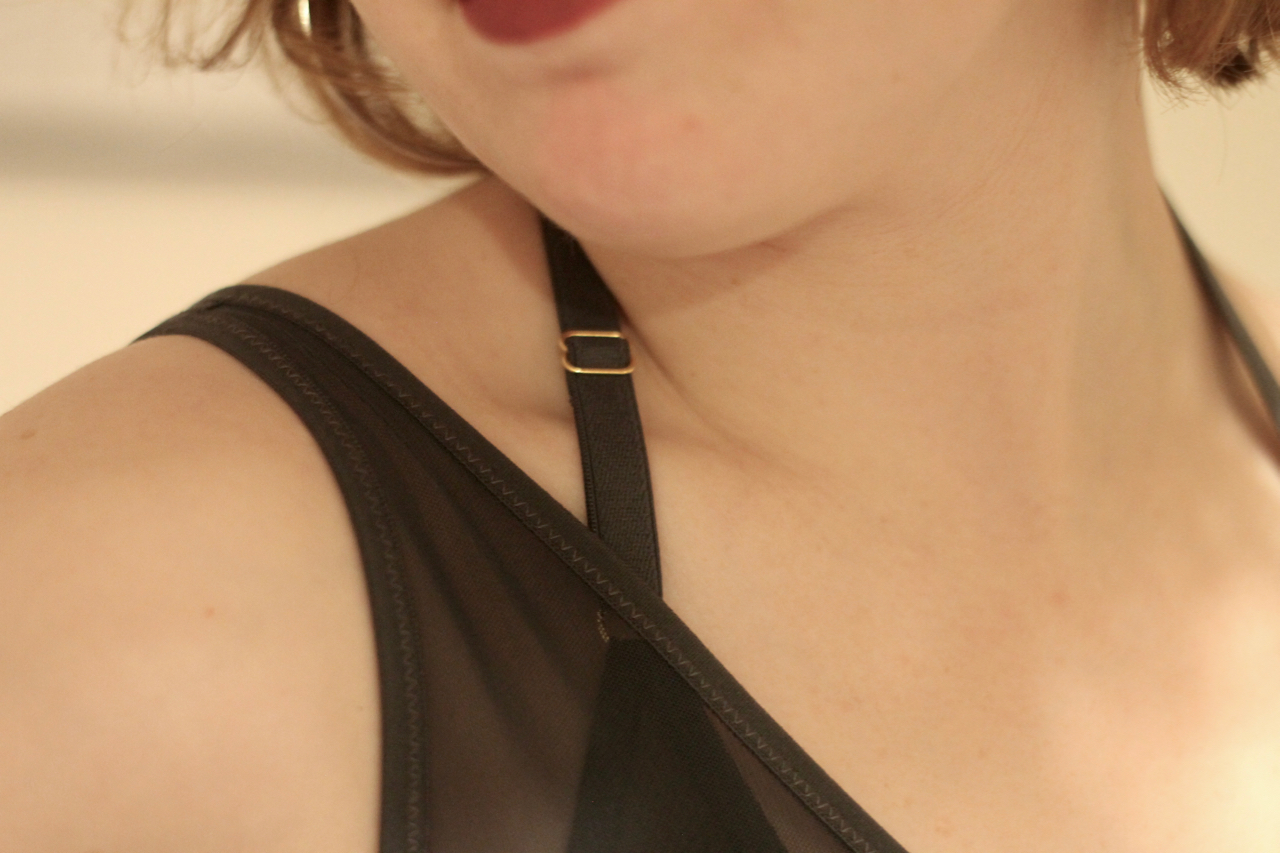 The bra literally functions as two bras in one; there’s no skimping here! Although I do frequently attempt to put it on inside out…but I guess that’s maybe a testament to how beautifully made it is, that I often mistake the inside for the out?! Anyway, it’s that layering that provides enough support and coverage, and gives the lovely dual neckline. It almost looks athletic to me, but in a ‘I’m sporty, but definitely not off to play sports’ kind of way. If that makes any sense to anyone. I also love the way it looks from the back. That is, it’s backless. I’m a big fan of most backless garments, and I really love how elegantly this is executed in the design. One of those times when you just want to kiss your fingers and take your hat off to the designer.